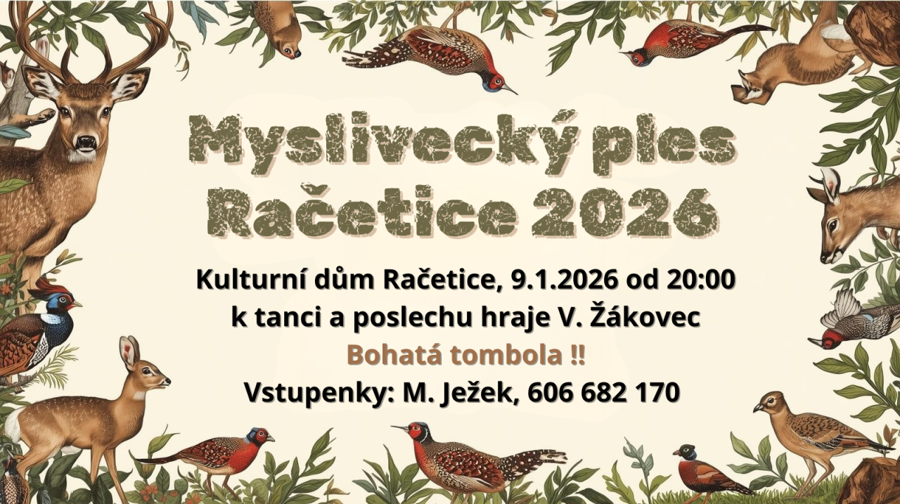 Přijďte na tradiční myslivecký ples s tombolou v Račeticích 2026!